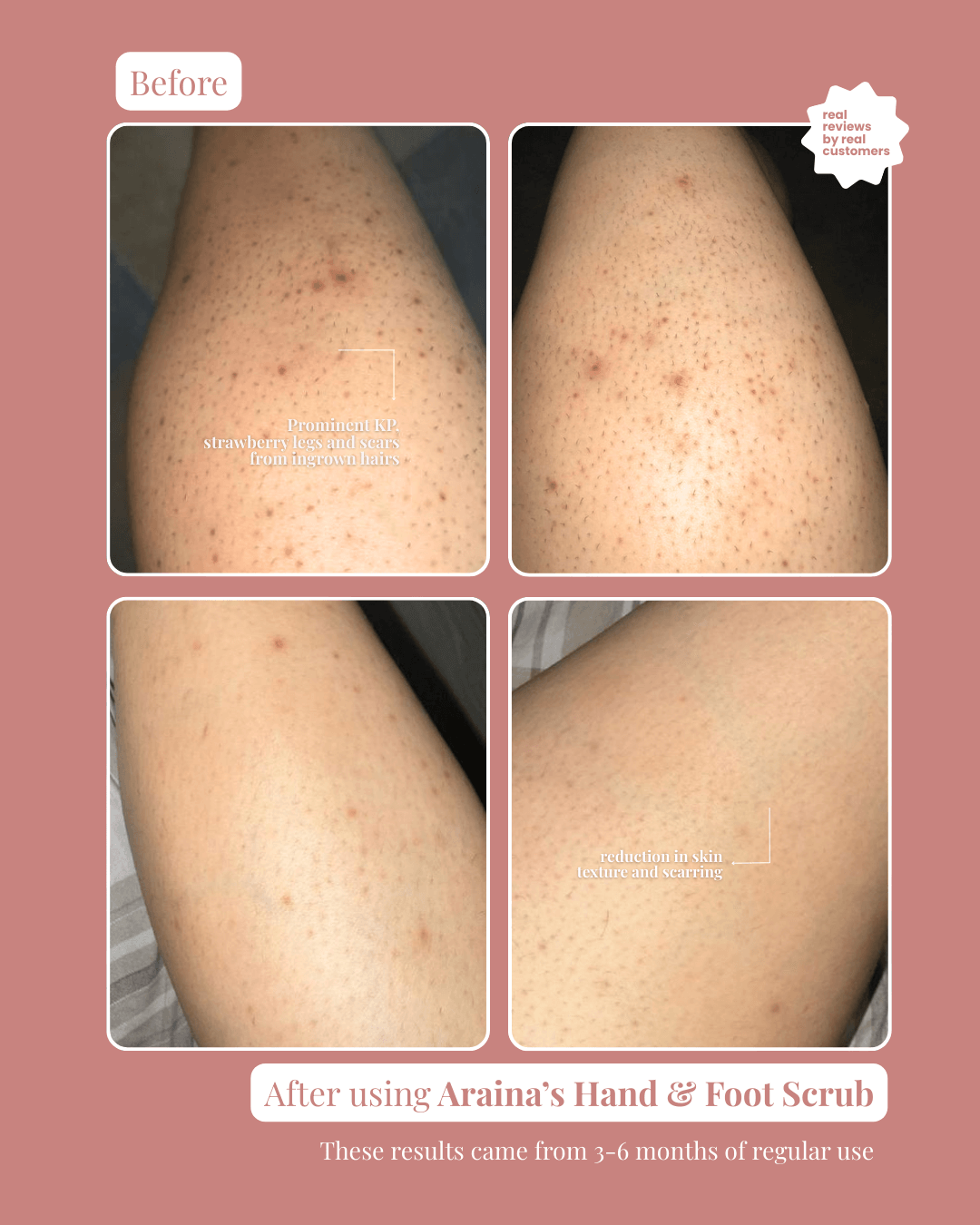 - Helps prevent/ reduce ingrown hair and strawberry skin.