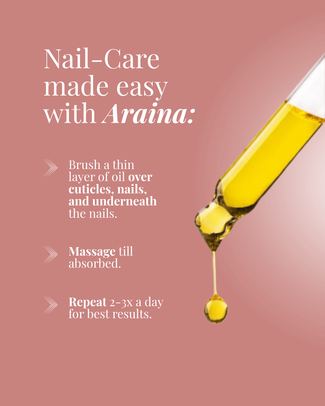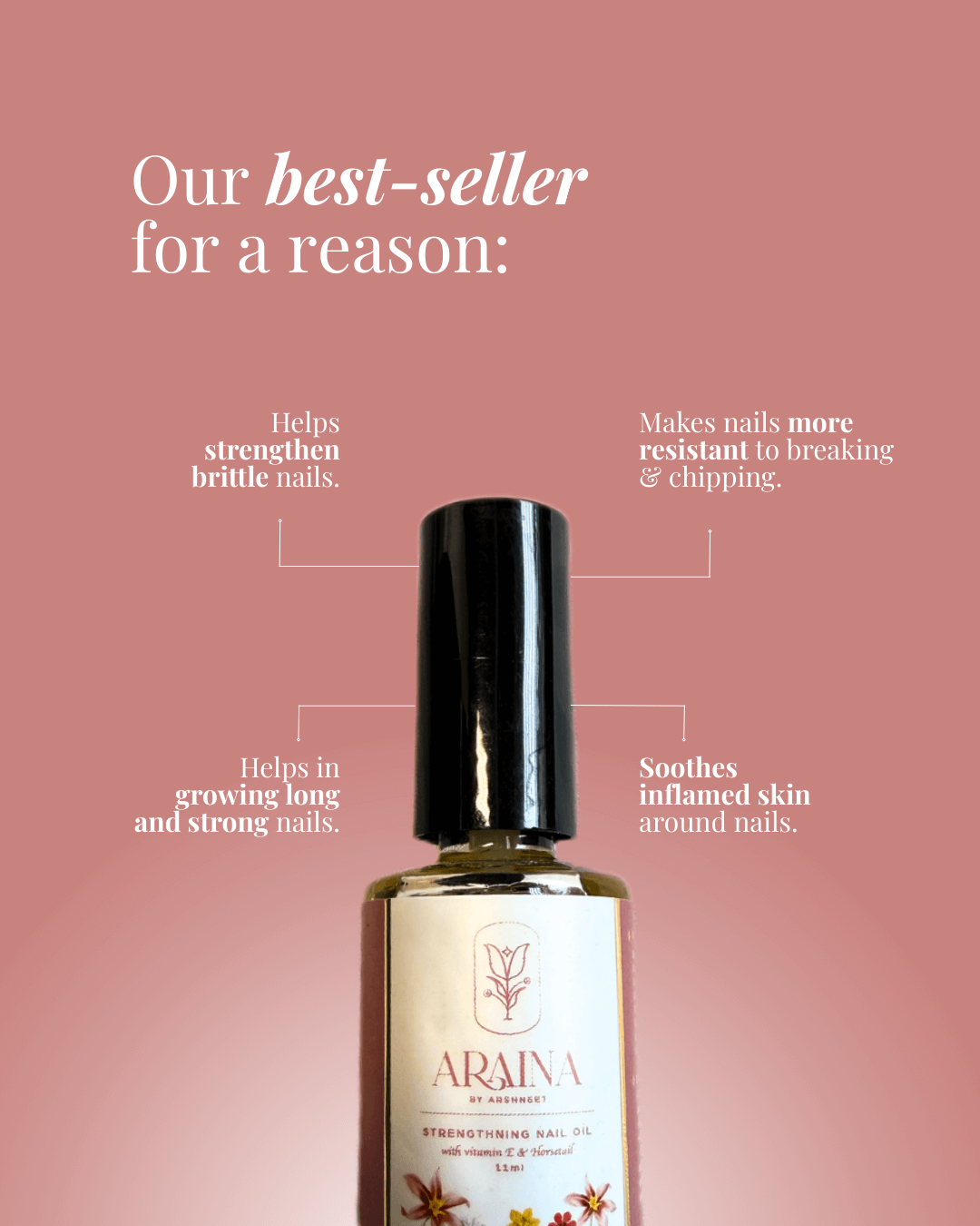 Infused with strengthening horsetail & Arnica along with a blend of healing flowers and herbs, this brilliant nail oil blend is a boon for dry, brittle nails which break, tear or chip easily. This nail oil is excellent for cuticle inflammation or peeling skin as well.